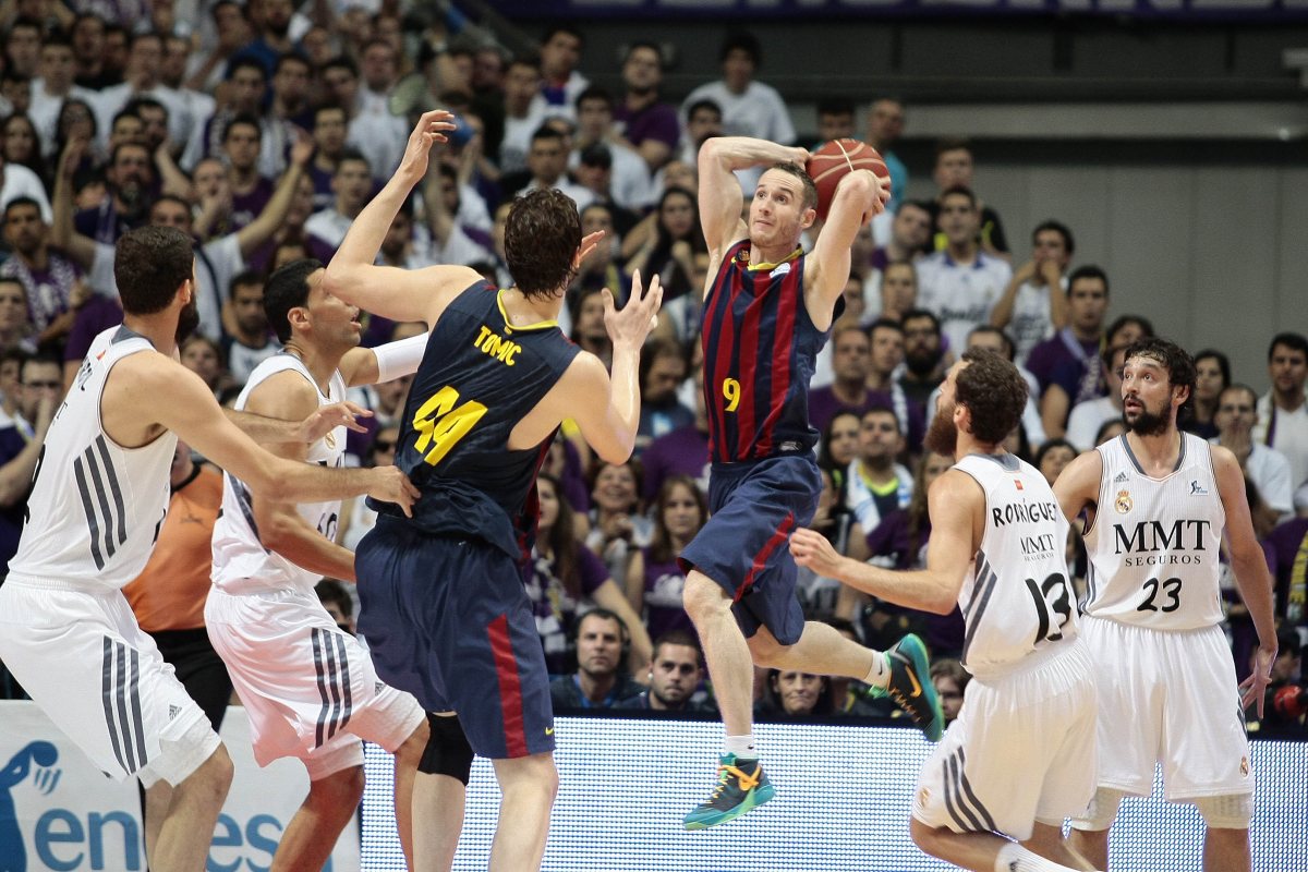 Sin embargo el Barça tuvo mucha más sangre fría. Huertas tuvo buen criterio para buscar a Tomic (17 puntos, 11 rebotes, 22 de valoración) que siempre hizo daño en el pick and roll. Siempre que estuvo en pista creó muchos problemas en la defensa madridista que seguía sin entonarse. En cambio el Real Madrid cada vez tenía más dudas en ataque. Más espeso y con pocas ideas, iba perdiendo el paso. El Barça se encontraba cómodo en el estrecho margen que había conquistado. Su defensa y los problemas que tenían los rivales para afrontarla le concedían mayor seguridad. Un triple errado por Bouroussis, ya en el último minuto, se antojó definitivo para la suerte del encuentro. El Barça ya sólo tenía que acabar el trabajo desde el tiro libre, algo que no es trivial conociendo los problemas de los azulgranas desde la especialidad. En esta ocasión Navarro (14 puntos, 4 asistencias, 16 de valoración) no dejó lugar a la duda. Su muñeca se mostró casi infalible desde el tiro libre para no dejar un resquicio al Real Madrid. El Barça se hace con el control de la final en el primer asalto. Puede tomarse con calma el segundo choque en Madrid que se presenta capital para el equipo de Pablo Laso. Toda la presión está ya del lado blanco.