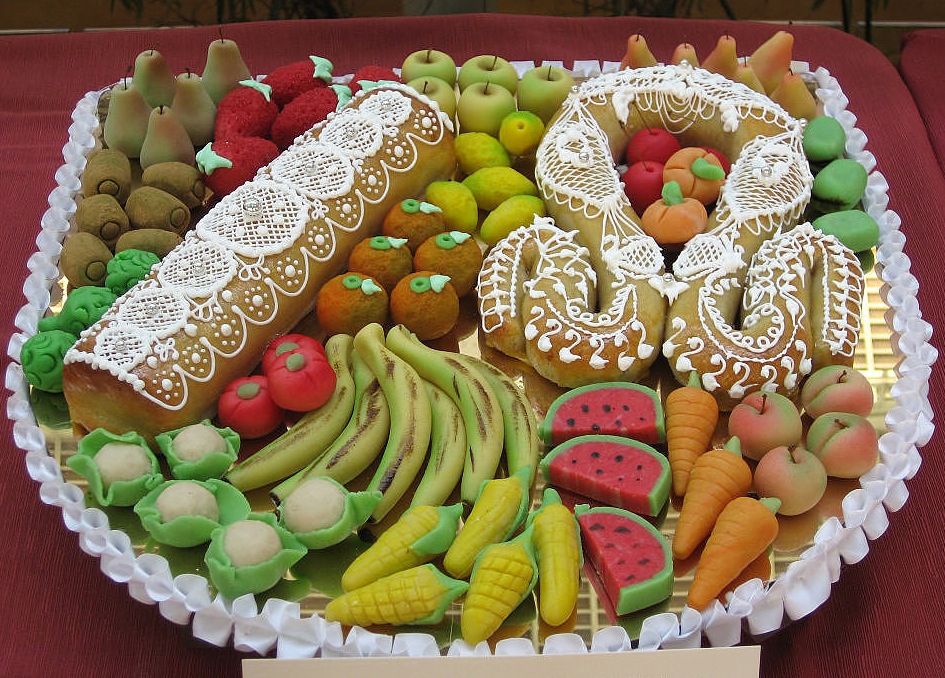 La fiesta tiene su origen en la prohibición tras la Guerra de Sucesión de celebrar la entrada de Jaume I en Valencia. Los Decretos de Nueva Planta prohibieron expresamente la conmemoración que se realizaba, como no podía de ser de otro modo por estas tierras, con mascletades a granel. :mrgreen: De ese modo, y de manera muy ingeniosa para evitar la prohibición, los panaderos empezaron a realizar mazapanes que representaban las frutas que se le ofrecieron al rey Jaume I cuando liberó la ciudad y se transformó en una fiesta amorosa porque entre los mazapanes también se realizaban formas de masclet* que como el nombre indica tiene forma fálica.